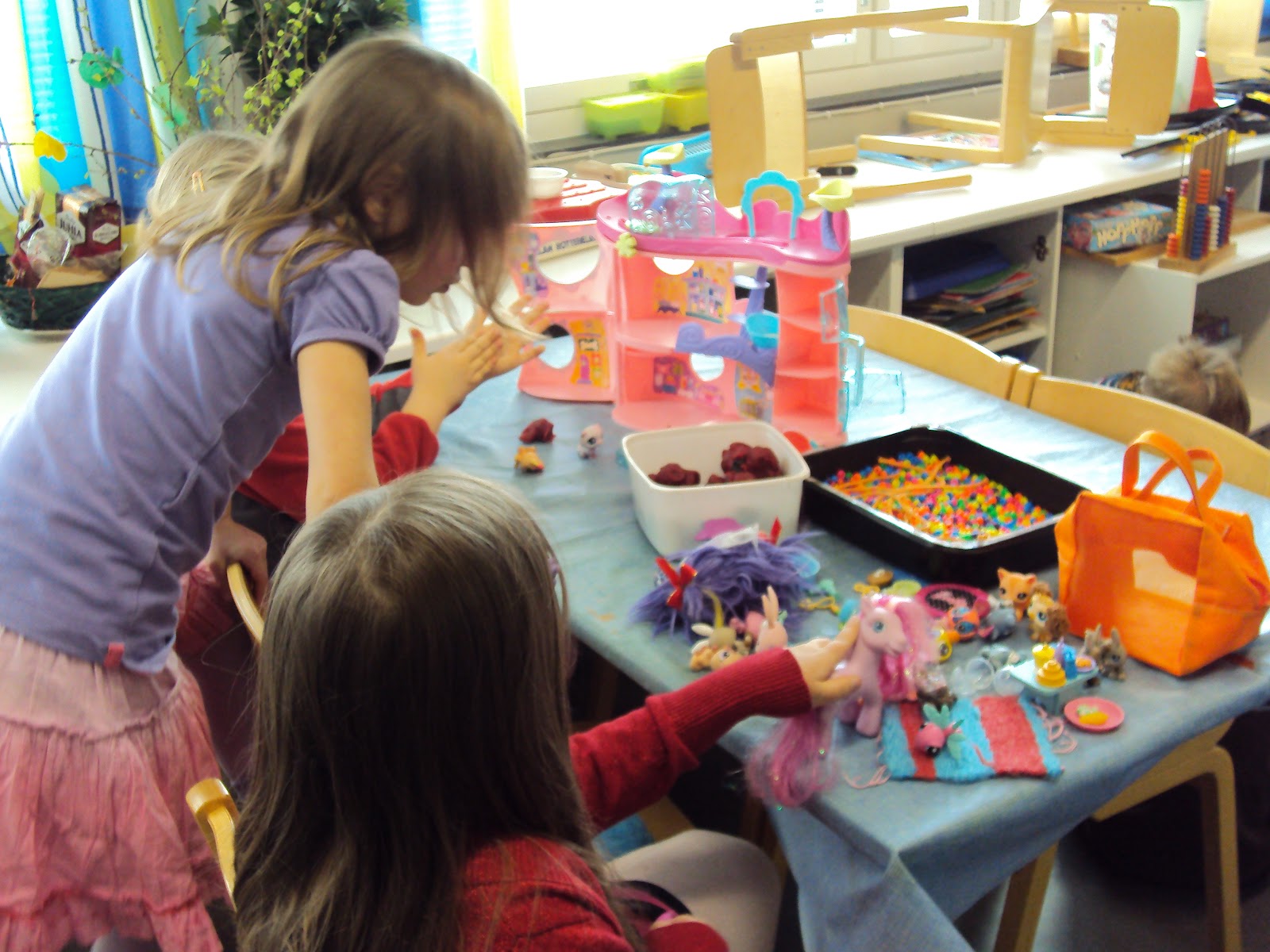 Tienen un horario muy flexible, dedican mucho tiempo al juego. Se centran fundamentalmente en el aprendizaje de normas. No aprenden a leer y escribir. Sólo conocen letras y números. Los espacios están más pensados para el juego que para el aprendizaje. Son espacios para hacer amigos, espacios para la relación. Todo está focalizado en el niño.