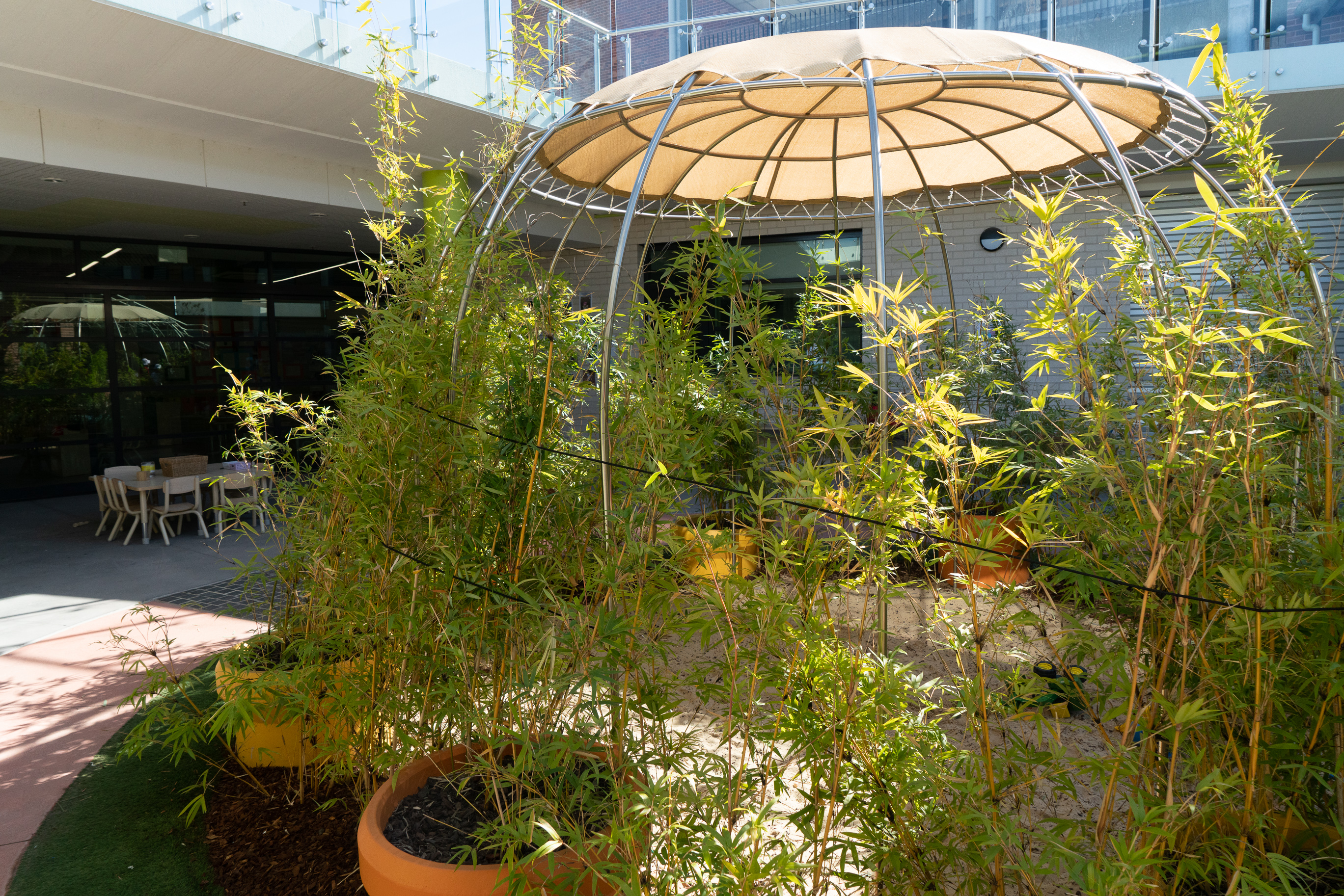 Lo primero que visito es la zona de Kinder (Educación infantil), lugares abiertos y al aire libre donde los niños juegan con arena. Todo está pensado para la educación.
