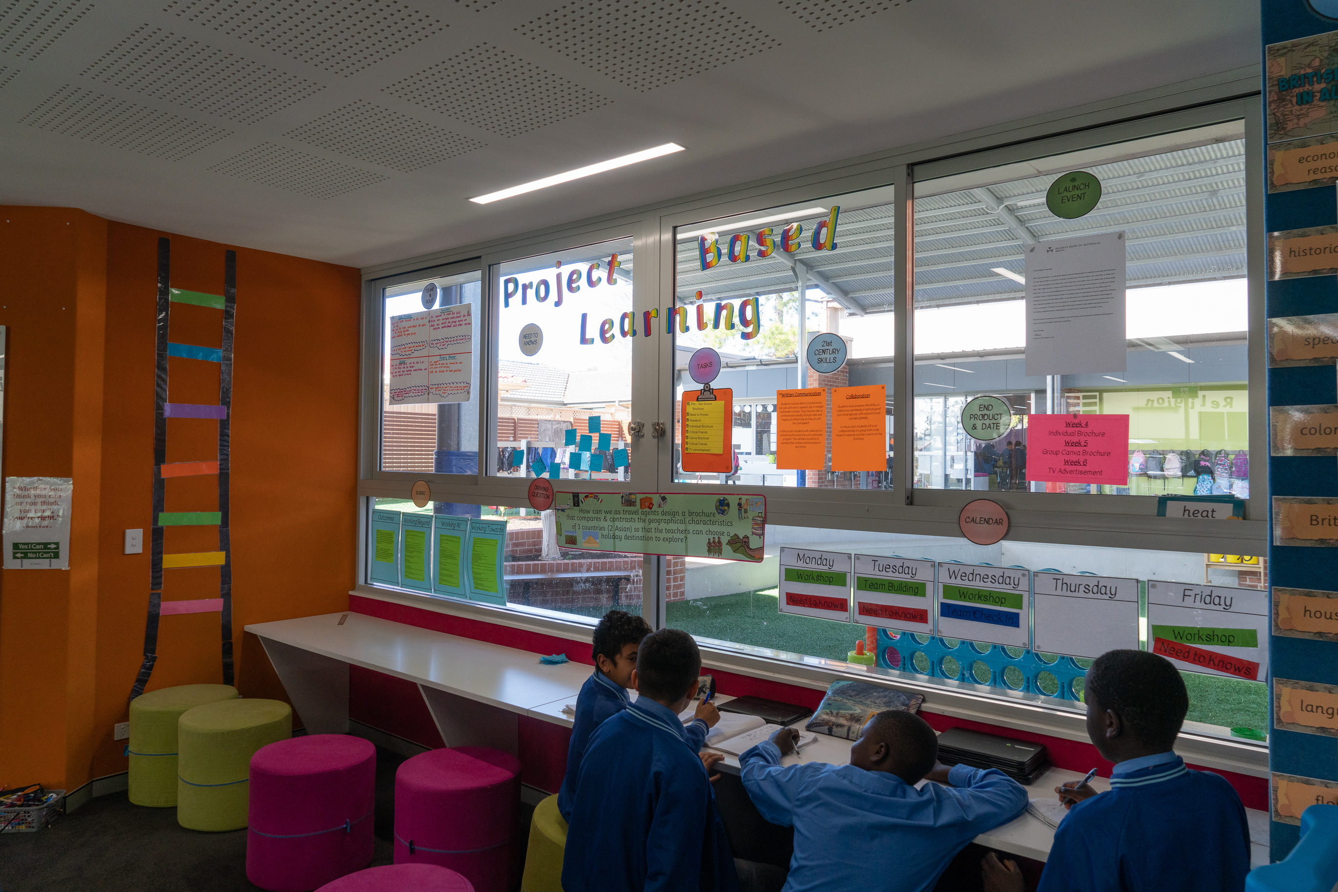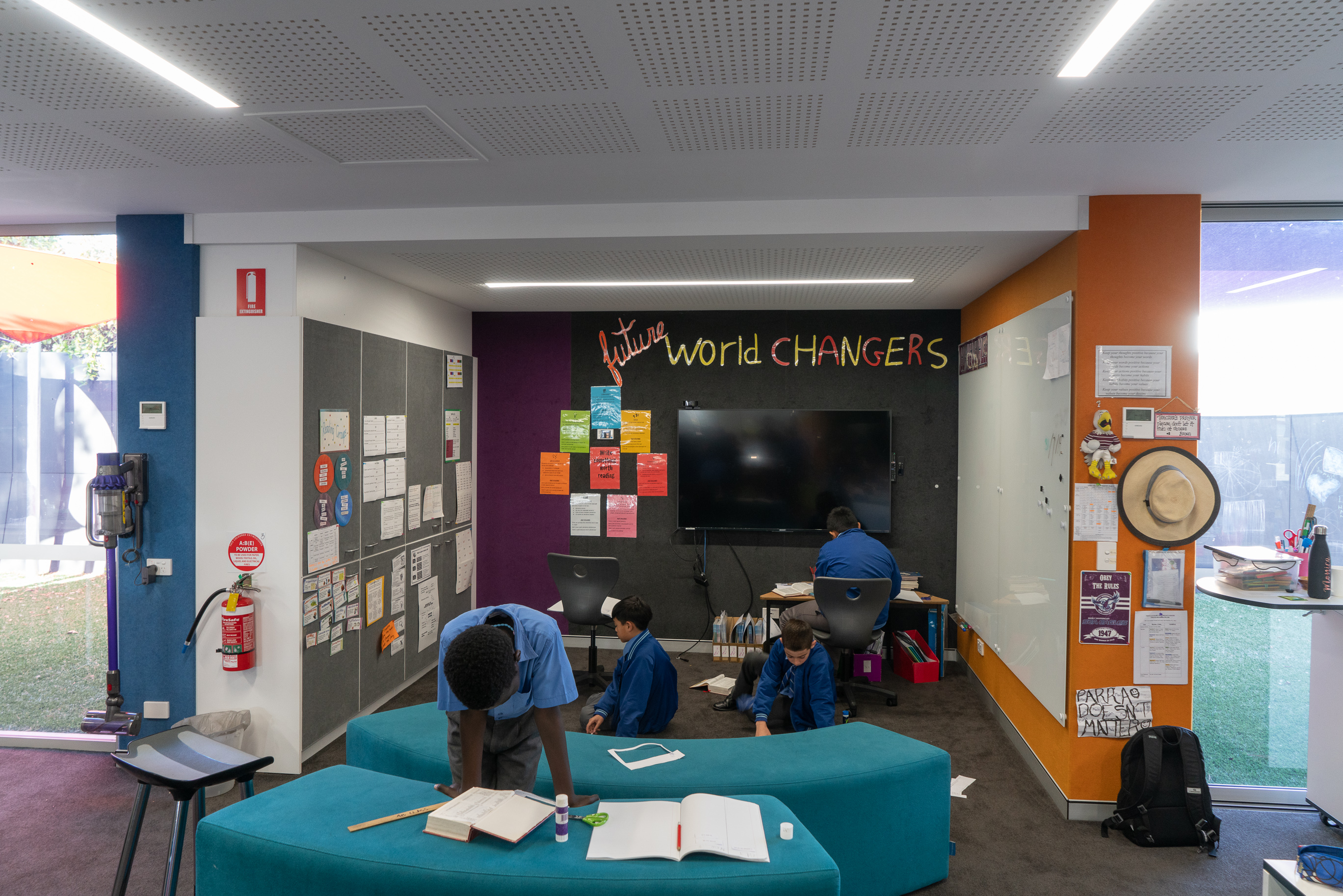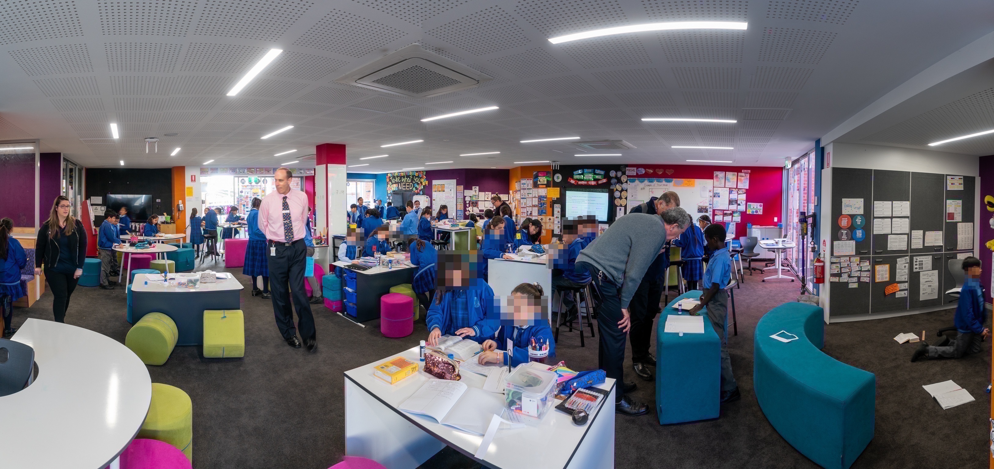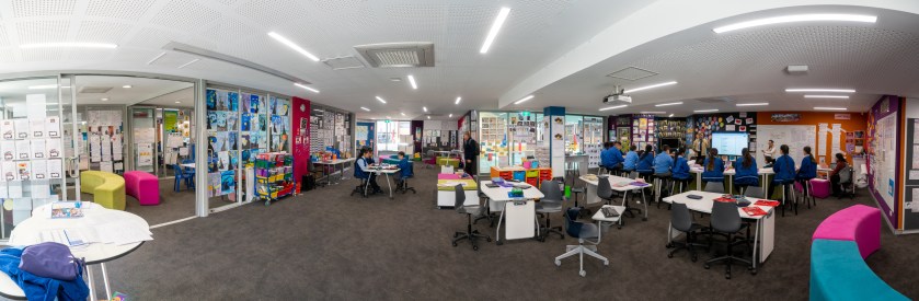 En la red de Colegios de La Diócesis de Parramatta existen diferentes layout estandarizados donde se inspiran en cada nueva transformación. En todos se utilizan los mismos colores. Suelen ser vivos como el rojo o el azul. Detrás de los monitores, para facilitar la visión, se usa el negro. Hay paredes verdes para trabajar cromas…