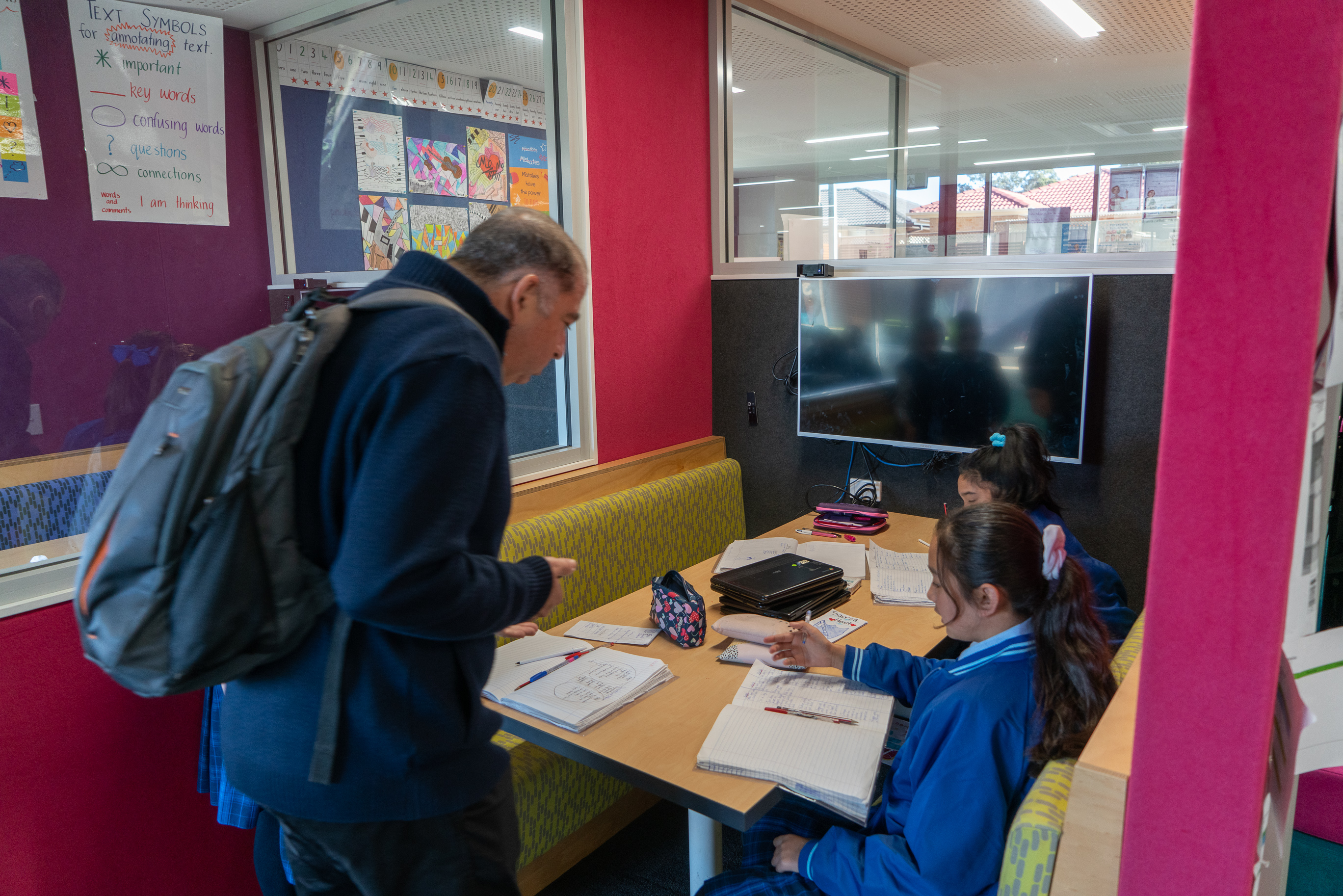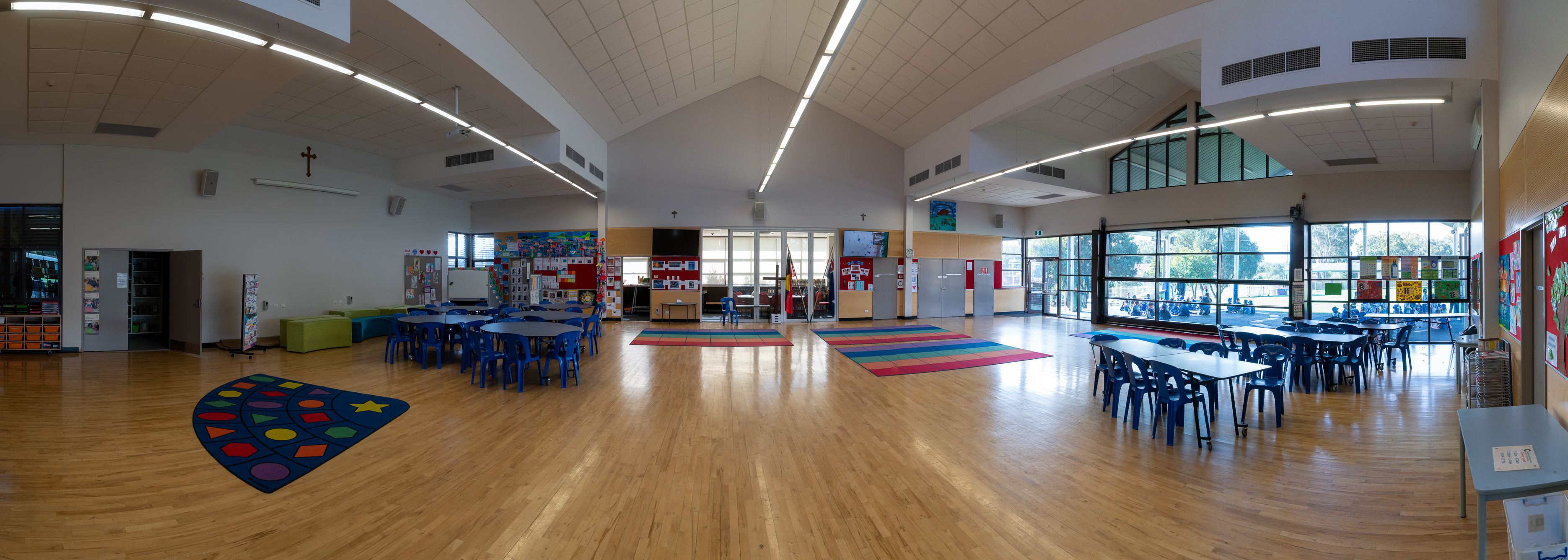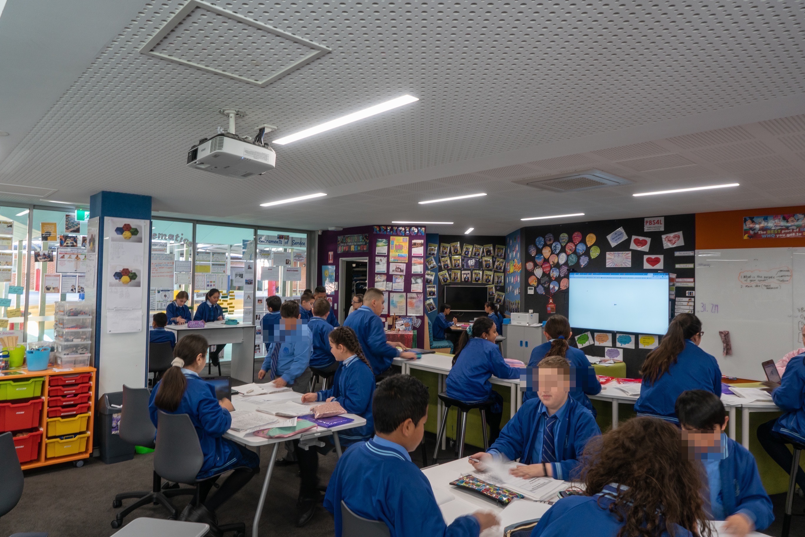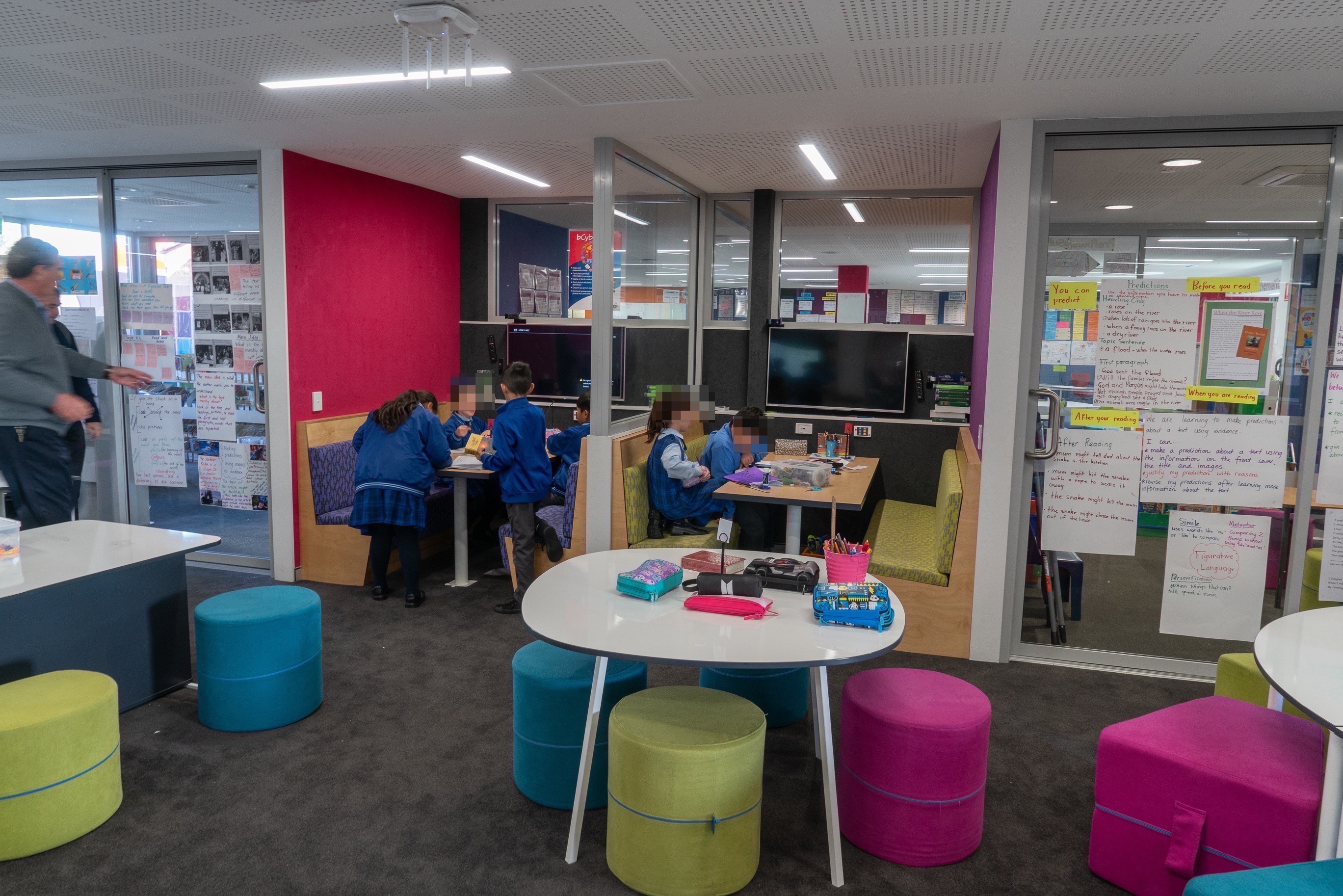 En la red de Colegios de La Diócesis de Parramatta existen diferentes layout estandarizados donde se inspiran en cada nueva transformación. En todos se utilizan los mismos colores. Suelen ser vivos como el rojo o el azul. Detrás de los monitores, para facilitar la visión, se usa el negro. Hay paredes verdes para trabajar cromas…