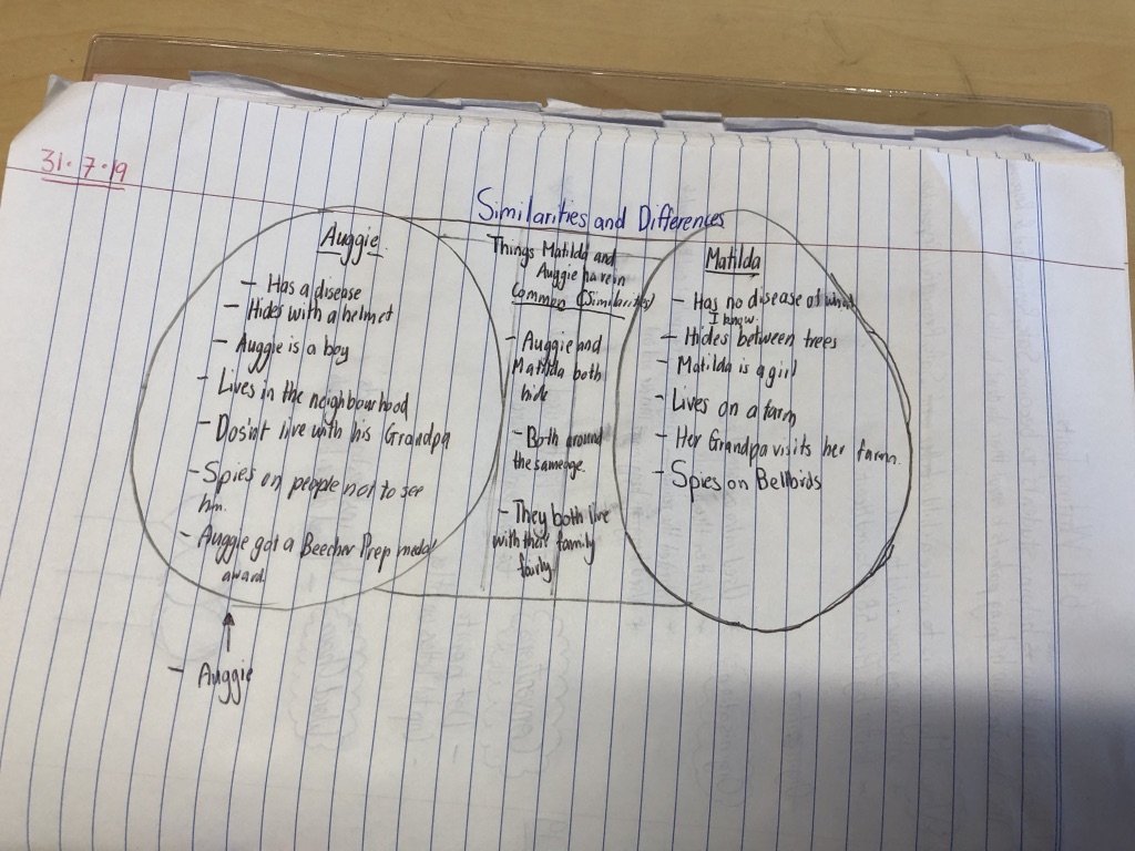 Al acercarme a unos alumnos, vi que estaban trabajando un “compara y contrasta” lo hacían en grupo de una manera muy organizada y cooperativa.