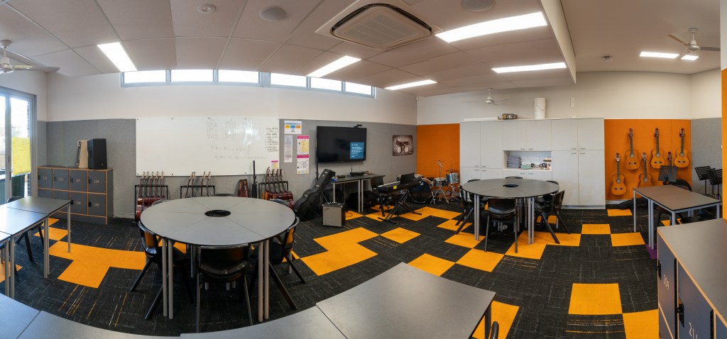 Todos los alumnos tocan todas las tardes en el aula de música. La música es muy importante y todos tienen que aprender a tocar un instrumento. Aquí también se trabaja por proyectos. Hacen música y componen letras. A través de la música se trabaja también temas de convivencia. Hay campañas contra el bullying desde esta área.